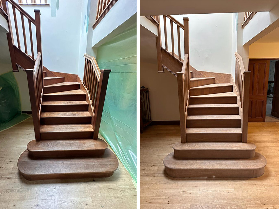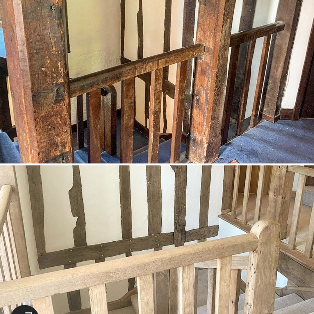 , providing Sandblasting services to remove paint and varnish from staircases, restoring them to their original form.